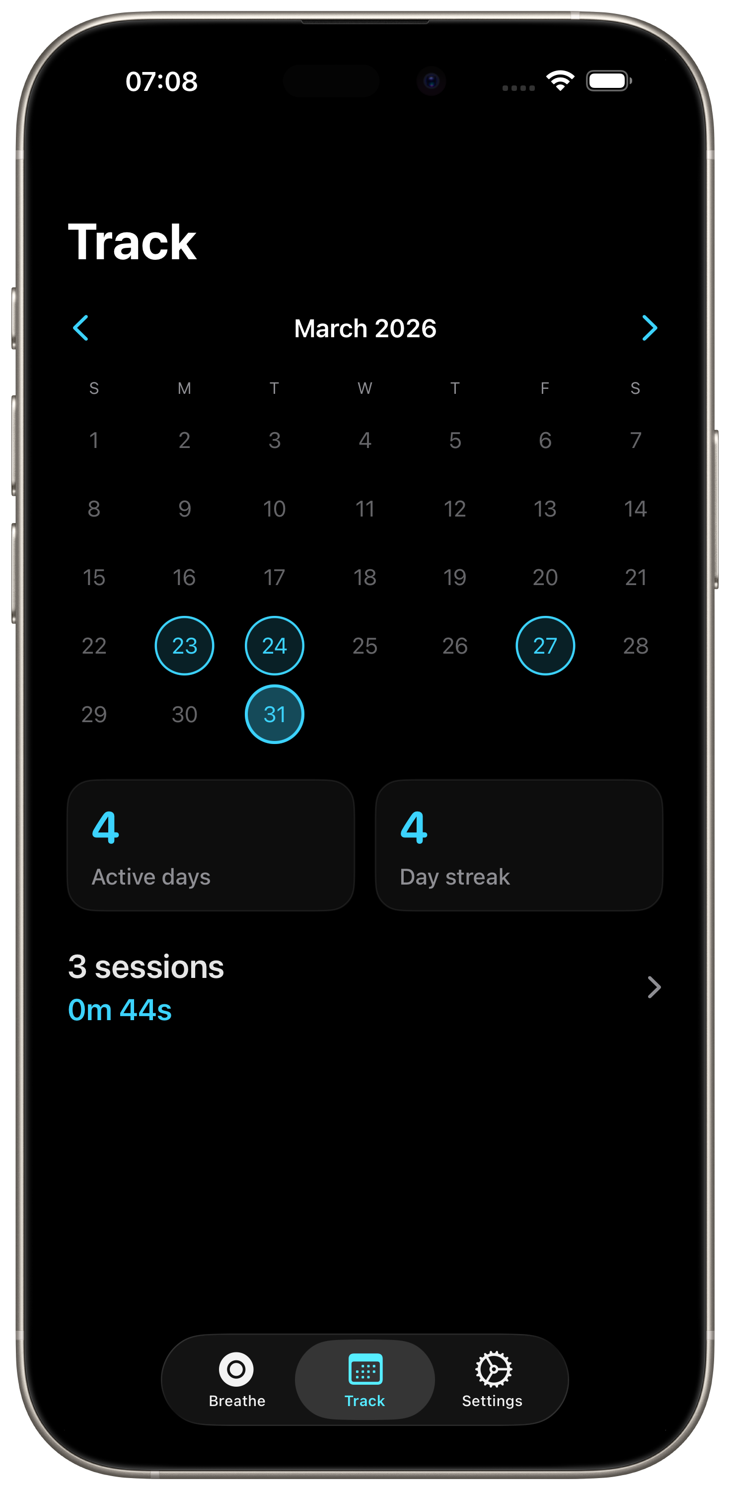 Many people use 4-7-8 breathing as a sleep aid, for sleep anxiety, or as a short calming routine before bed. Others use it as an iOS breathing app or Apple Watch breathing app for a fast reset during work, travel, or high-stress moments when they want guided breathing without extra clutter.